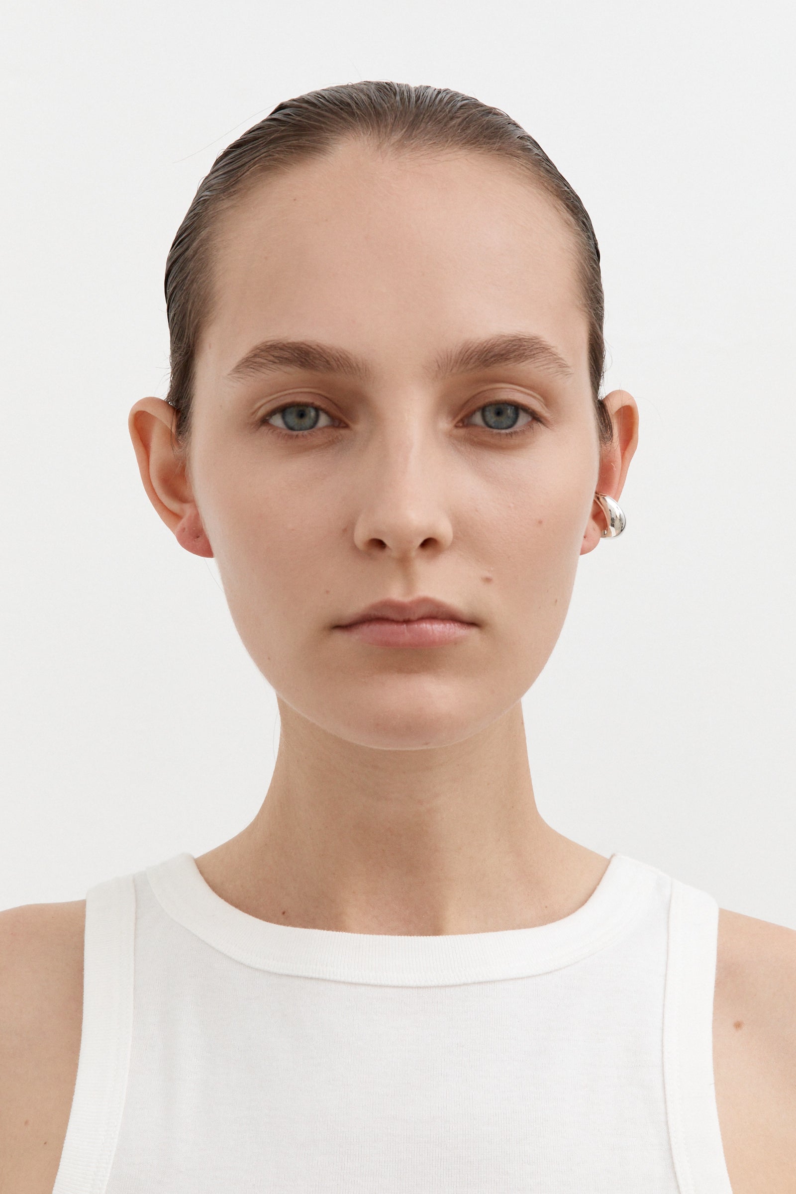 A uniquely bold ear cuff with soft, confident lines. Mirror finish. A slip-on design that requires no piercing and is designed for layering.